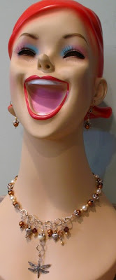Some of you who have followed my blog for awhile now will remember meeting Betty and Lucy, my faithful yet funky mannequins with the red hair. They hang out with me in my studio, and do all the modeling for the necklaces and earring photos. Some people think they are scary....I think they are fun!